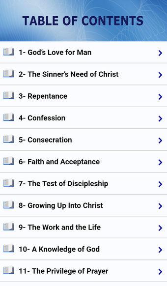 หัวข้อในเครื่องมือนี้จัดเรียงตามบทและแบ่งออกเป็นเล่ม แอปนี้เหมาะสำหรับทุกคน แต่อาจเป็นประโยชน์สำหรับผู้ที่เคยมีการสัมผัสกับพระเจ้าและต้องการค้นพบวิธีการเสริมสร้างความสัมพันธ์